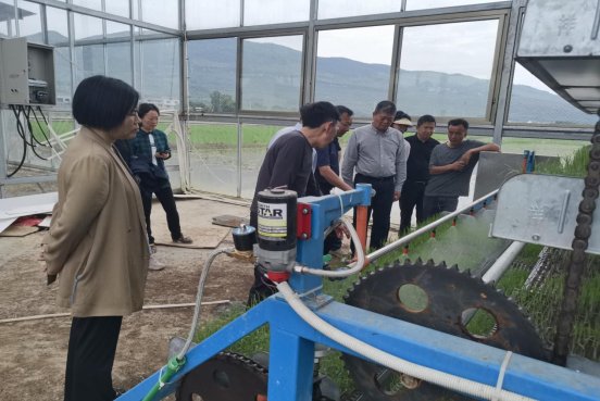 何光前一行察看基地温室育秧情况
