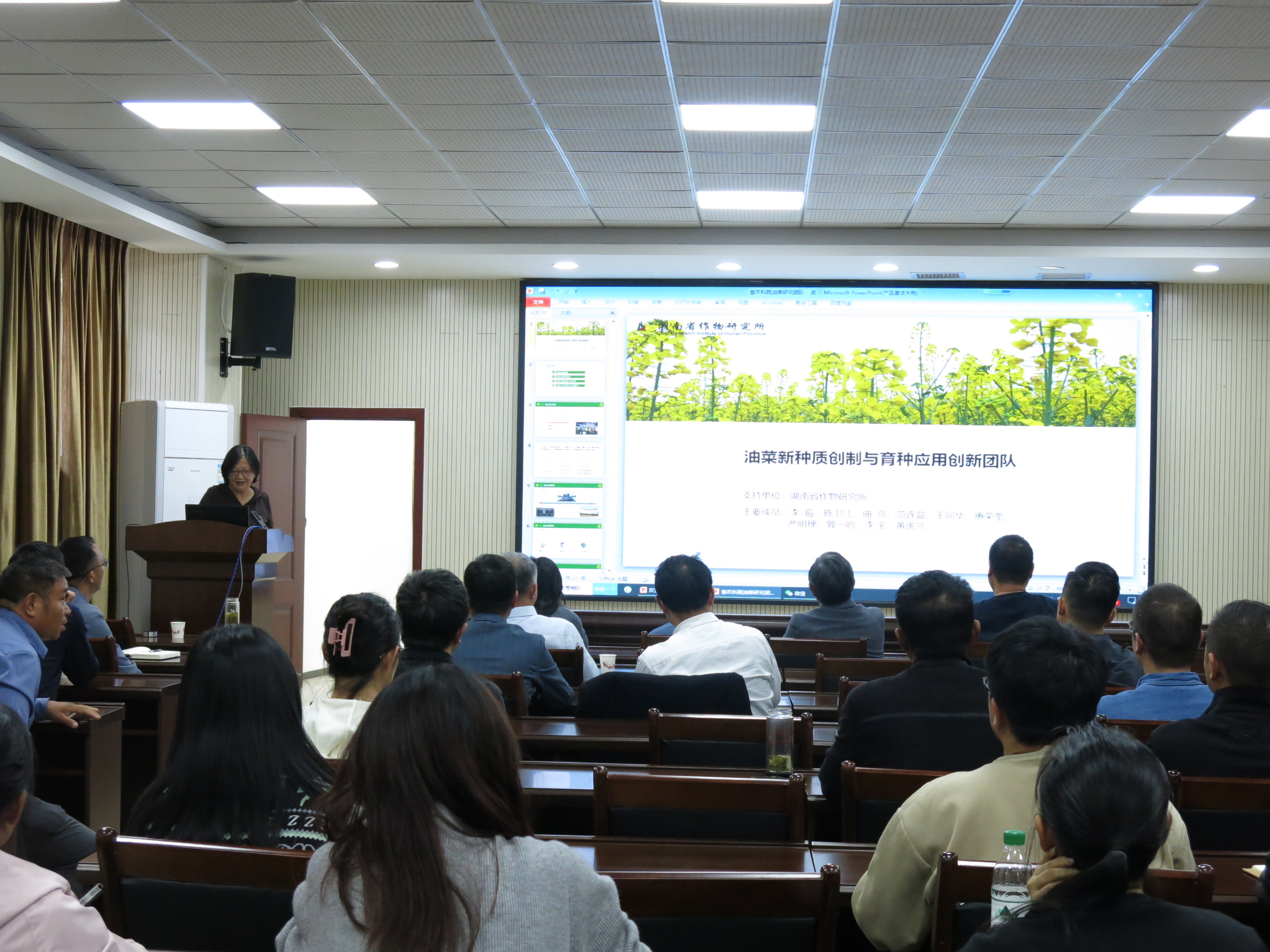 湖南省农科院作物研究所所长李莓研究员介绍了湖南农科院作物研究所的《油菜新种质创制与育种应用创新团队》,让大家了解了该团队的成立背景、基本情况、创新能力与水平及团队在行业和社会的影响力。