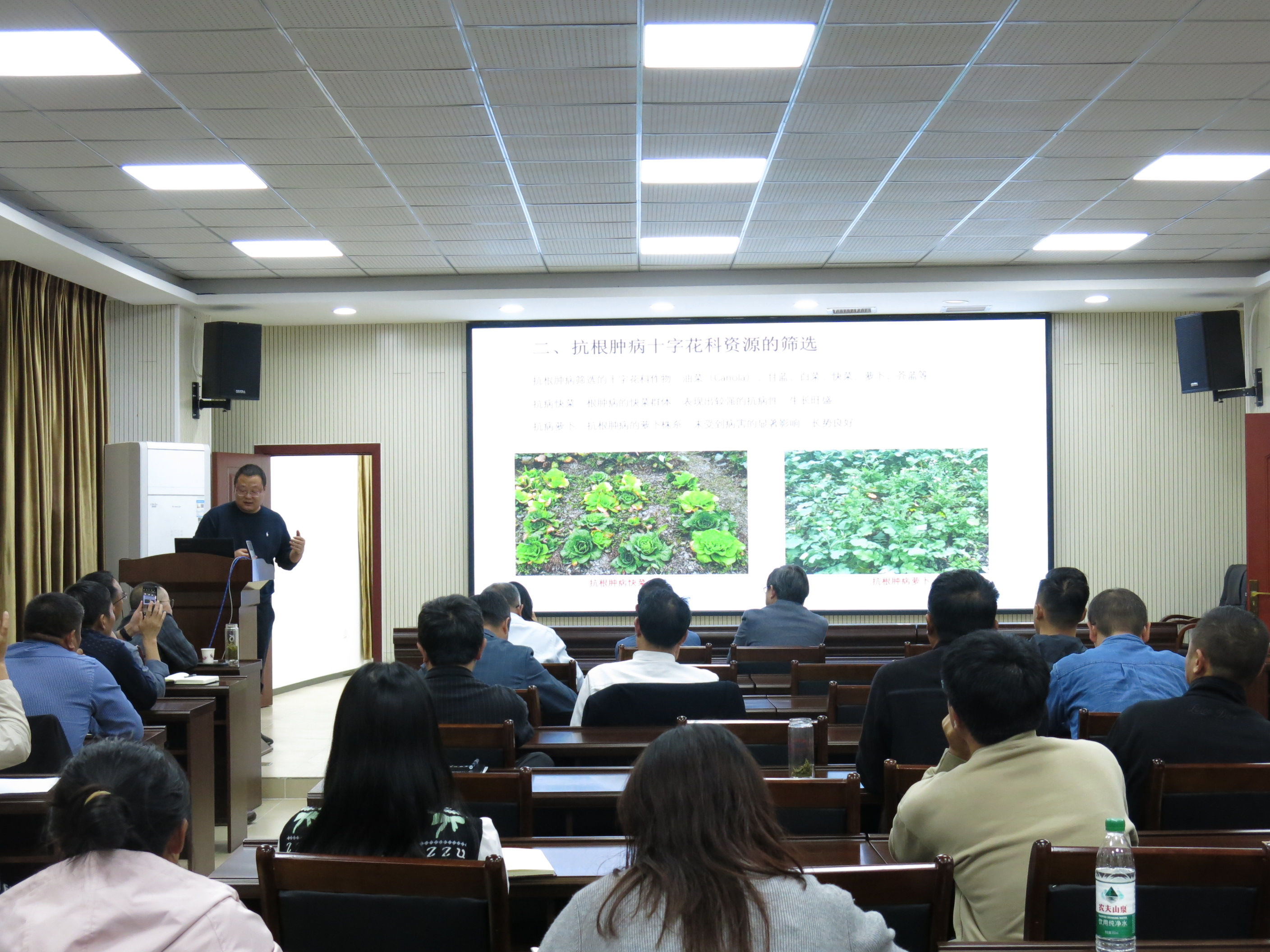 最后,成都市农林科学院副院长杨进研究员,给大家作《抗根肿病油菜新资源创制、选育及利用》学术报告,从根肿病发生情况、根肿病资源筛选、抗根肿病萝卜甘蓝资源Rsp-1的创制及鉴定及抗根肿病资源在甘蓝型油菜中的利用4个方面作了详细报告。