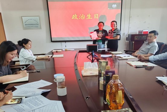 本次会议为本季度党员过政治生日,颁发生日贺卡。