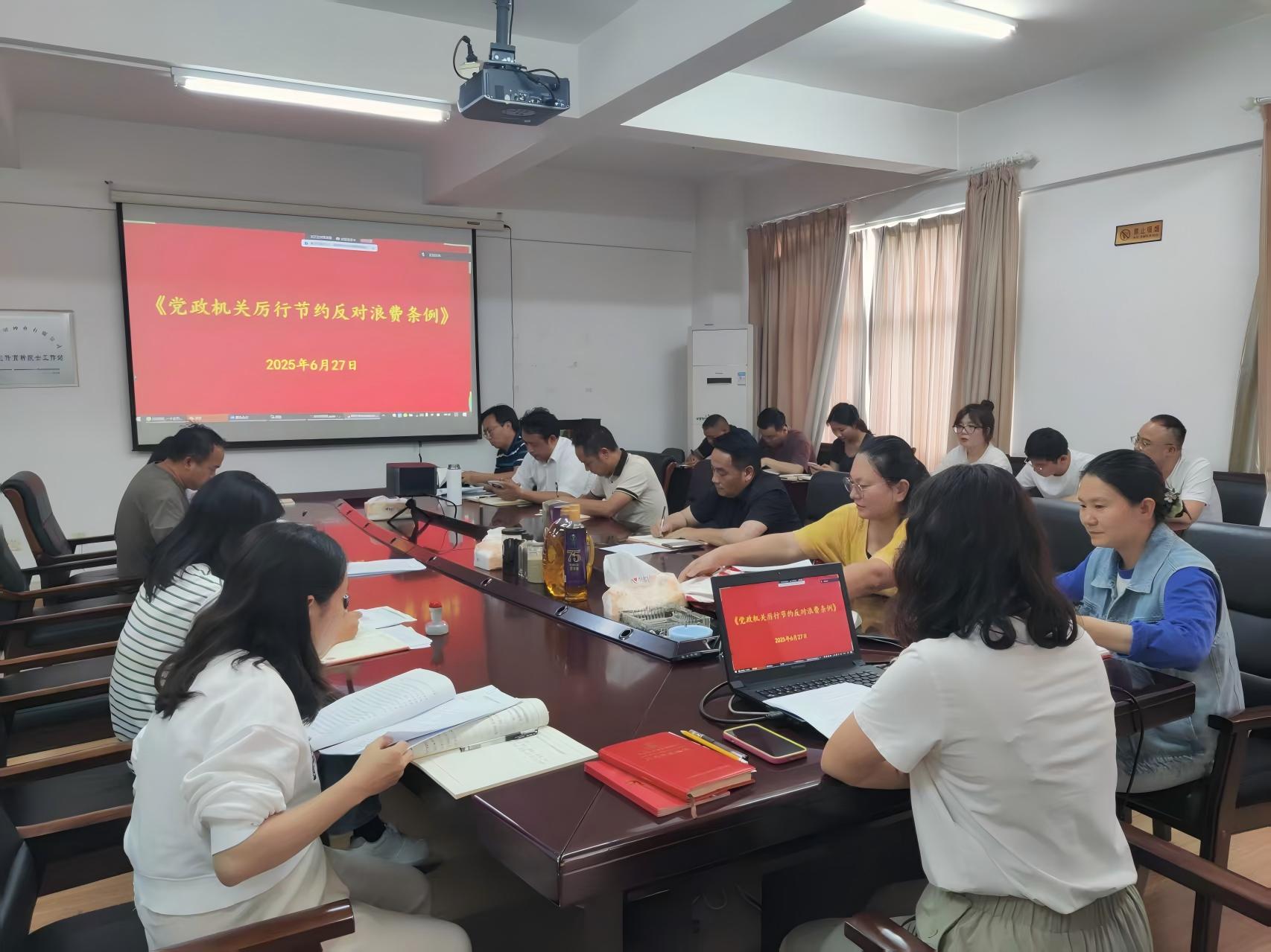 会议深入学习了习近平在第二届中国-中亚峰会上的重要讲话、习近平总书记重要文章-《锲而不舍落实中央八项规定精神,以优良党风引领社会民风》、《党的十八大以来深入贯彻中央八项规定精神的成效和经验》《党政机关厉行节约反对浪费条例》《集中整治违规吃喝》《深入贯彻中央八项规定精神学习教育工作简报(第3、4期)》《党政机关国内公务接待管理规定》《贵州省公务活动全面禁酒的规定》《省级领导同志下基层公务接待“十严禁”》等内容。